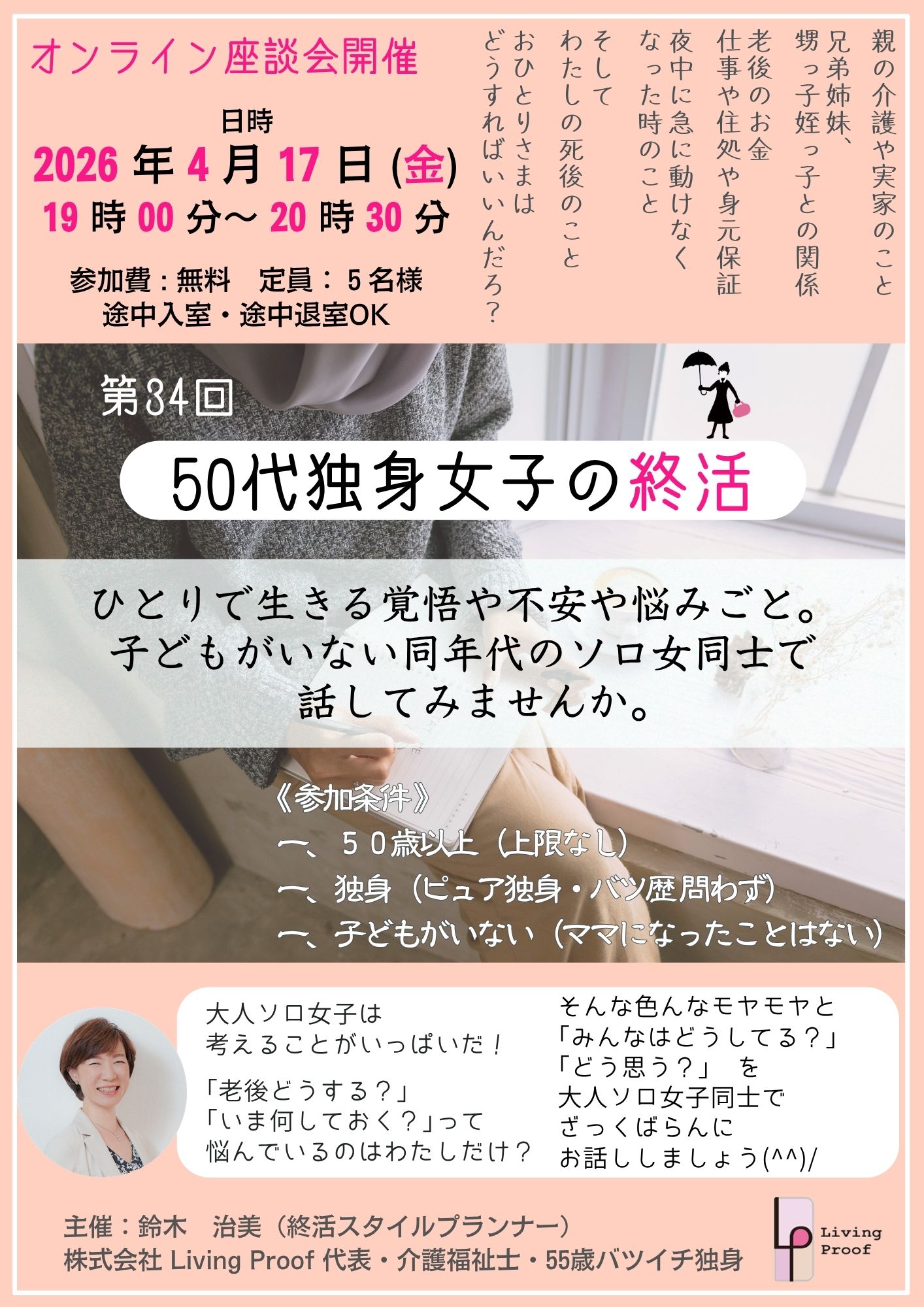 4/17(金) 50代・子なし独身女子の終活 オンライン座談会 Vol.34