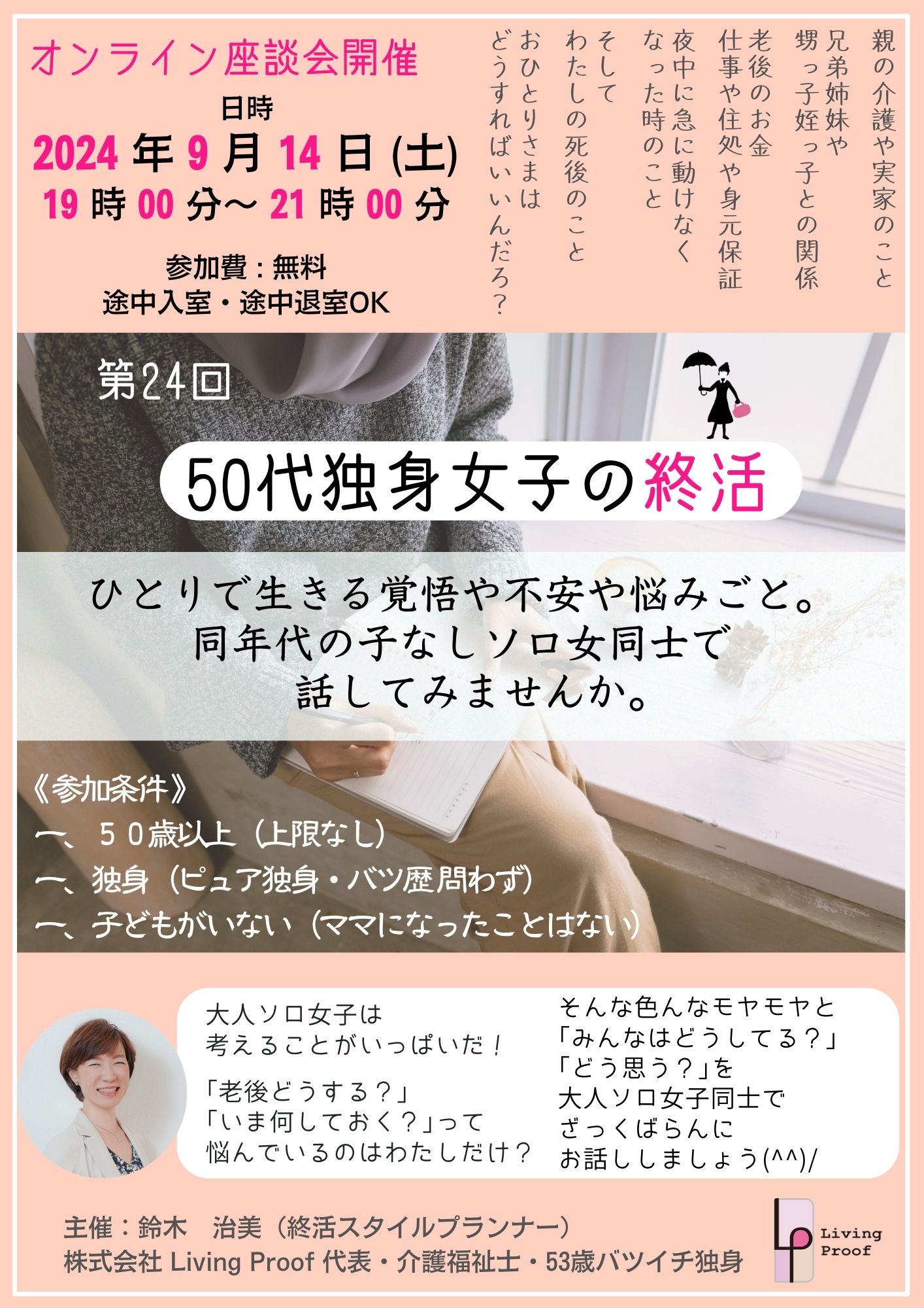 9/30(土) 50代独身女子の終活 オンライン座談会 Vol.17